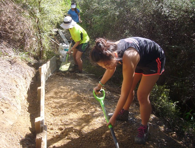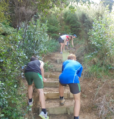 The team then moved on to a more remote and steep section of track. Because of the slope, the team decided to install additional steps to make it easier to climb up. They also boxed in several steps which were prone to erosion.