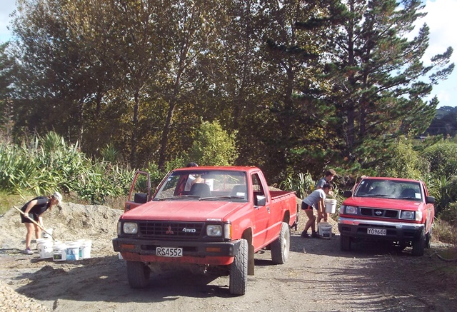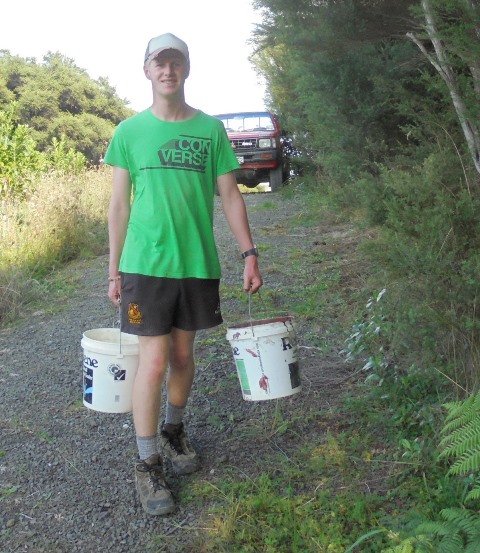 We took the buckets as close as we could get by vehicle, but it was still a long walk down to the track site.