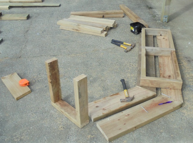 The team assigned to do the benches started out by studying the existing benches to get the design and dimensions. They then cut out the timber and assembled the benches.