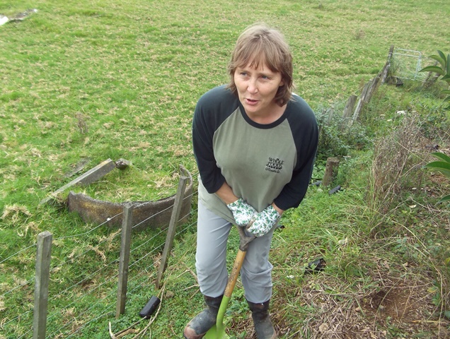 The first task was tree planting. The plan for the day was to plant along the boundary with the neighbour. The area was quite challenging as it was sloping and there were rocks and weeds to contend with. Thomas gave a planting demo and again reminded the group of safety issues.