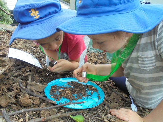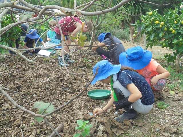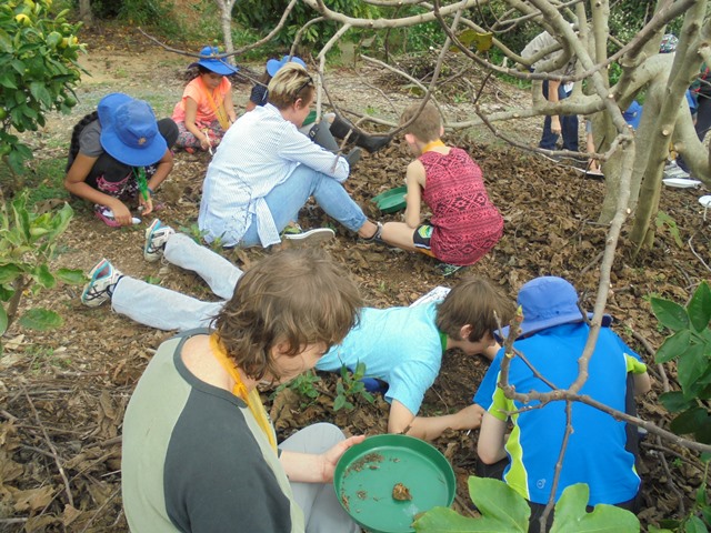 By digging in the leaf litter under the fig tree they found an amazing variety of worms and insects.