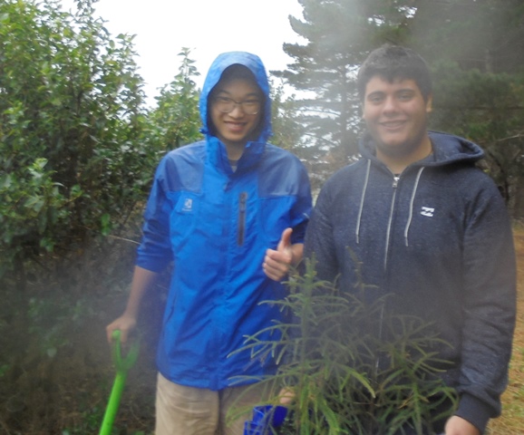 And we especially want to thank the hard working students for helping us so enthusiastically in spite of the challenging weather. We enjoyed meeting you and working with you. The trees you planted today will live for hundreds of years and provide food and shelter for native birds and animals. You have made a major contribution not only to CUE Haven but you have made a lasting and positive contribution to New Zealand and the planet.