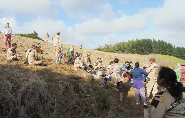 After tea, the group worked for a couple more hours and completed the planting for the day. They then took some time to explore the area and had a leisurely walk back to the cottage.