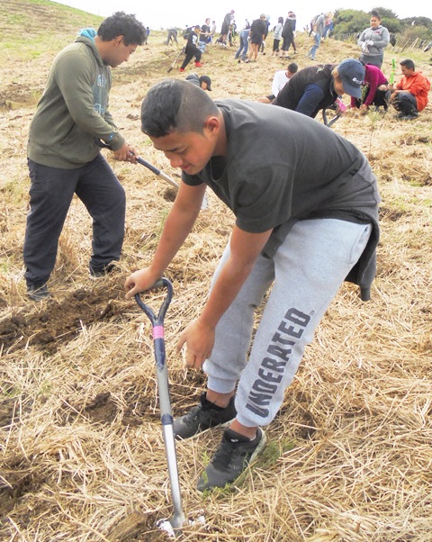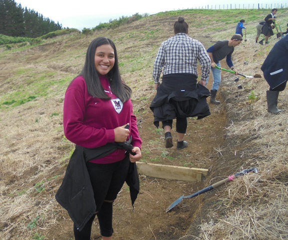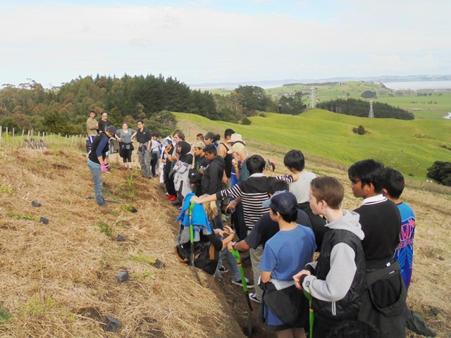 Since 2009, Year 12 and 13 horticulture students from Avondale College in Auckland have been planting at CUE Haven as part of the Auckland Council’s Trees for Survival (TFS) programme. Today a great group of 41 students joined us for a day of planting. They were accompanied by teachers John, Hannah, and Ronnie.