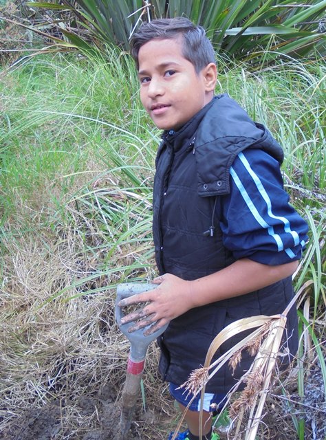Today twenty students – Aryan, Bertrand, Christian, Deborah, Ellie, Eunice, Hazel, Hohaia, Isadora, James, Jennifer, Lynelle, Maanasi, Maywand, Mohibullah, Noah, Pelekata, Rhiarn. Sosoia and Ted came out to plant the trees. They were joined by teachers Doug, Kieni and Tuakau.