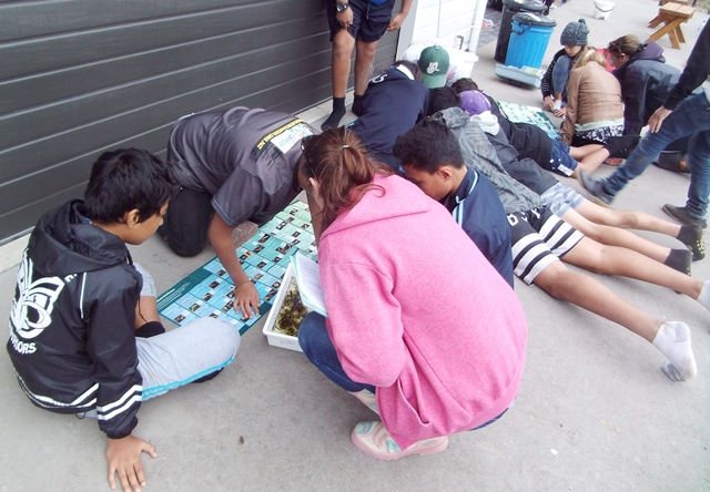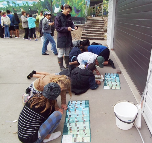 To give the students a real appreciation of the importance of planting trees in wetlands, we invited Rachel Griffiths and Shelley Hackett of Auckland Council’s Waicare programme to give the students a study session on water quality and macroinvertebrates. They were assisted by Louisa Copestake, a biodiversity management student from Unitec who is doing research at CUE Haven on macroinvertebrates.