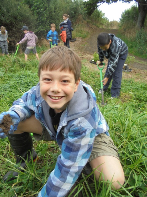 The entire group then spent some time planting manuka, karamu and mahoe trees in an area that had been sparsely planted in prior years.