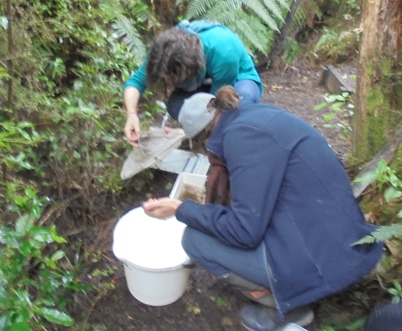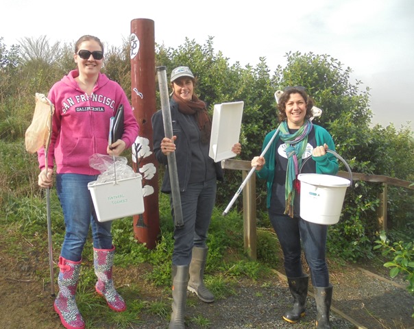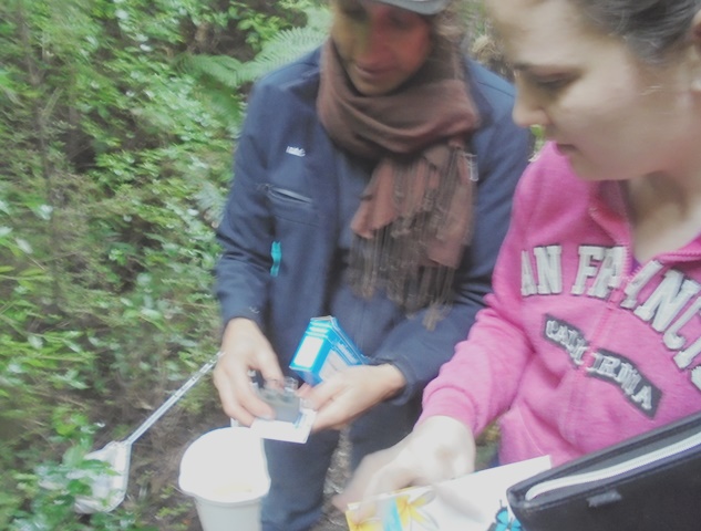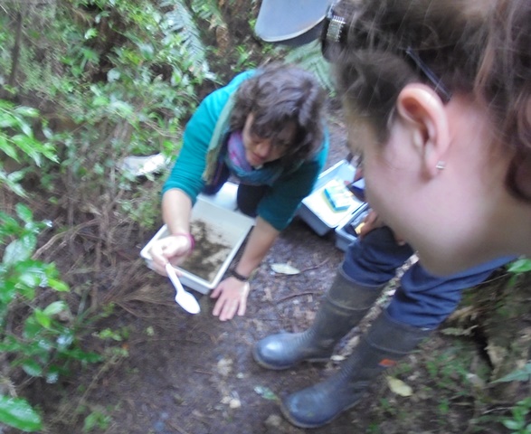 Today Shelley Hackett and Hazel Meadows from Waicare came out to again to check on sites visited in 2012 and conduct further analysis of the stream at other sites too. Also joining us for the day was Louisa Copestake, a final year biodiversity management student from Unitec who is doing research at CUE Haven on macroinvertebrates.