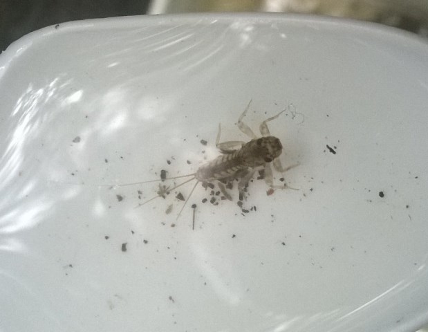In addition to some spiders and snails they were happy to find a flat mayfly: