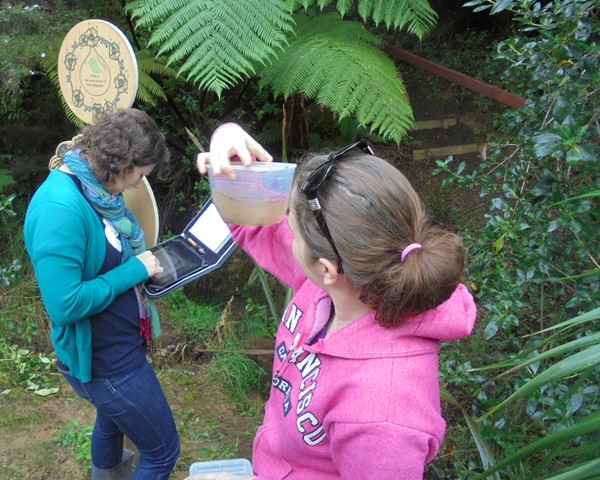 Since 2012, Waicare staff have been conducting water quality tests and identifying macroinvertebrates in the CUE Haven stream, Wai Mātauranga (Water of Wisdom) and the ponds.