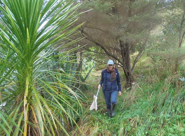 The big excitement for the day was finding a kokopu in roughly the same place we had found other kokopu back in 2012. The kokupu we caught and released today was approximately 150 mm long. Yeah!