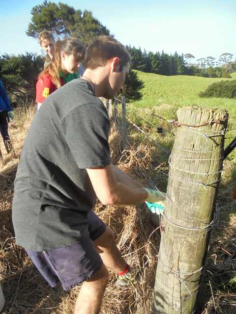 At the top of the property we found a section of fence with broken wires and William taught the team how to do some effective repair work.