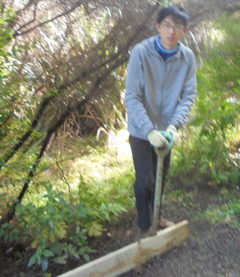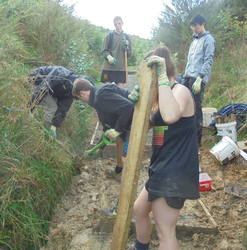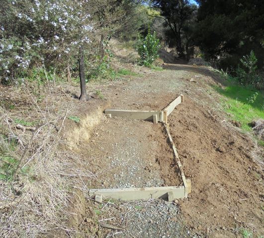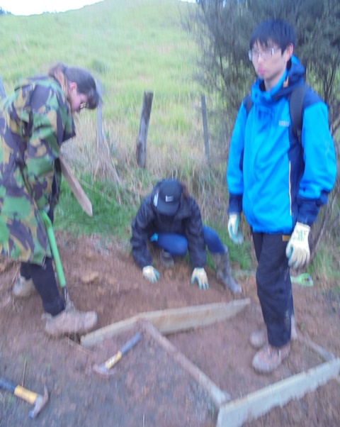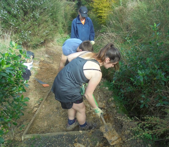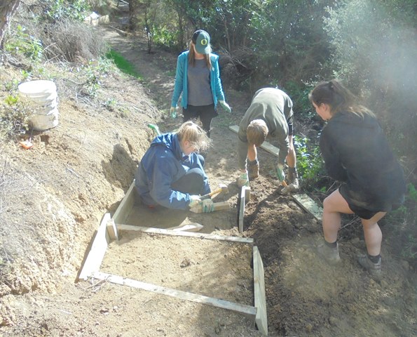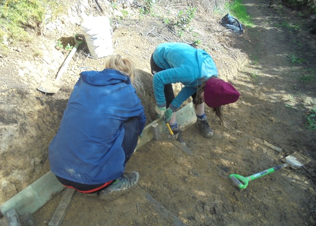 Meanwhile Agnieske, James, Jena and William worked on other sections of the track, boxing in steps and installing retaining walls.