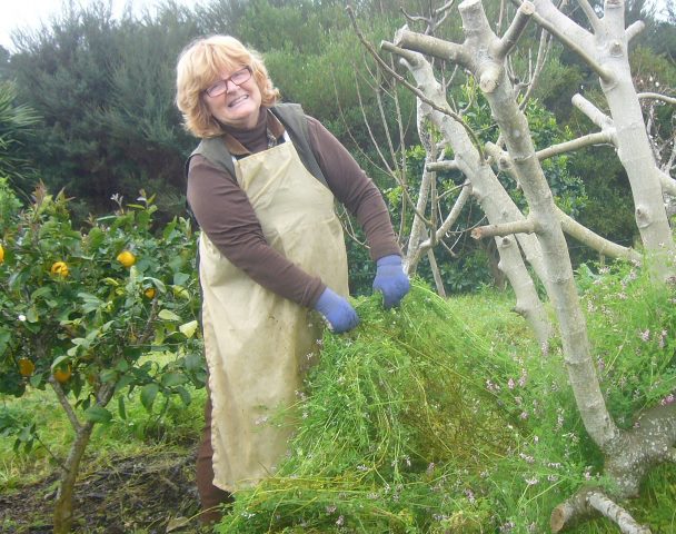 Under the weeds Patte found a few baby kahikateas seedlings which she transplanted into little pots.  Thanks so much—it’s a real win win to get rid of weeds and find some valuable canopy tree seedlings!