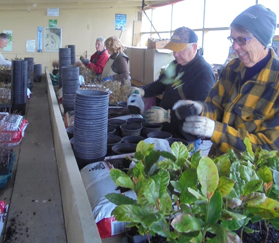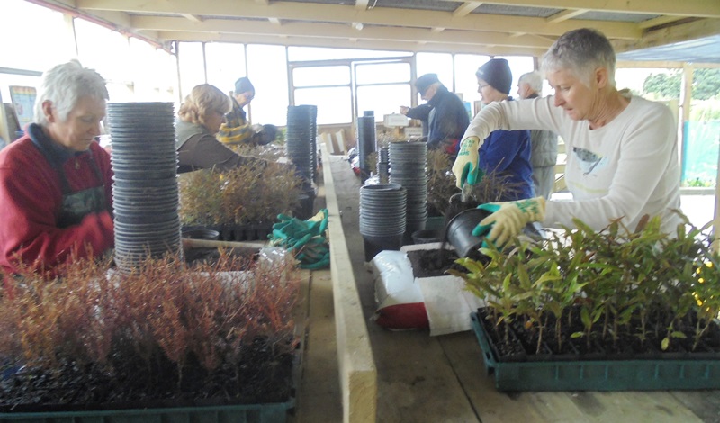 The Royal Forest and Bird Protection Society of New Zealand is one of the oldest and most respected conservation organisations in NZ.  The Society has over 70,000 members in fifty branches around the country and today our friends from the Warkworth Branch spent a day at CUE Haven helping us pot up seedlings.