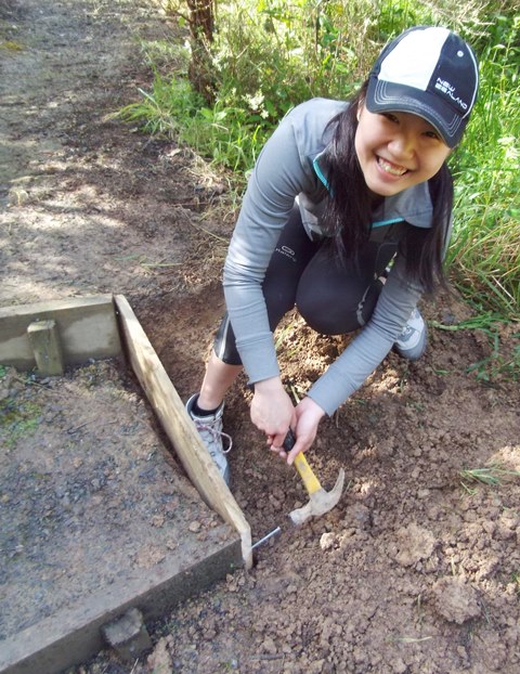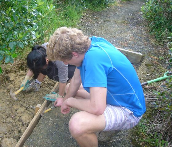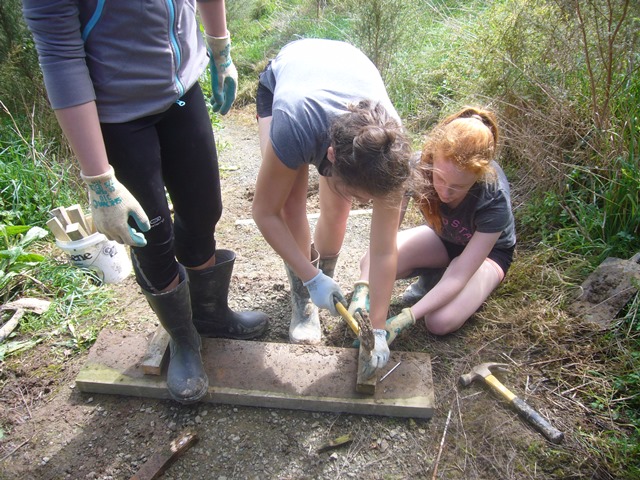 We started out by fixing up a small problem with some steps leading to one of the bridges. The team installed sides on the steps to prevent further erosion. The job required digging, measuring, cutting and nailing.