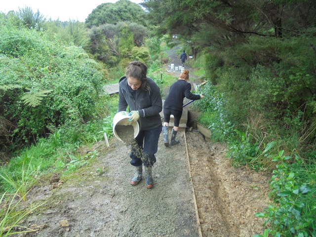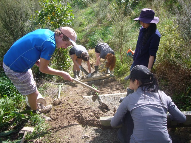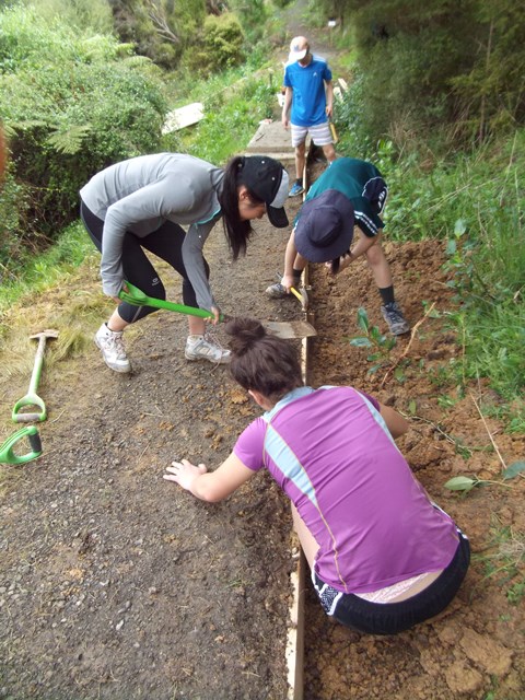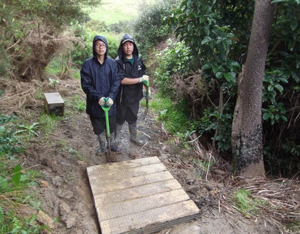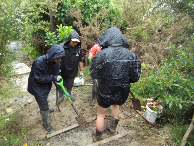They then continued on for most of the week fixing up different parts of the tracks. The biggest job involved boxing up steps to prevent erosion, and also the building of small retaining walls along track edges. The job required lots of digging and planning. No two sections of track are the same and each problem required a unique solution.