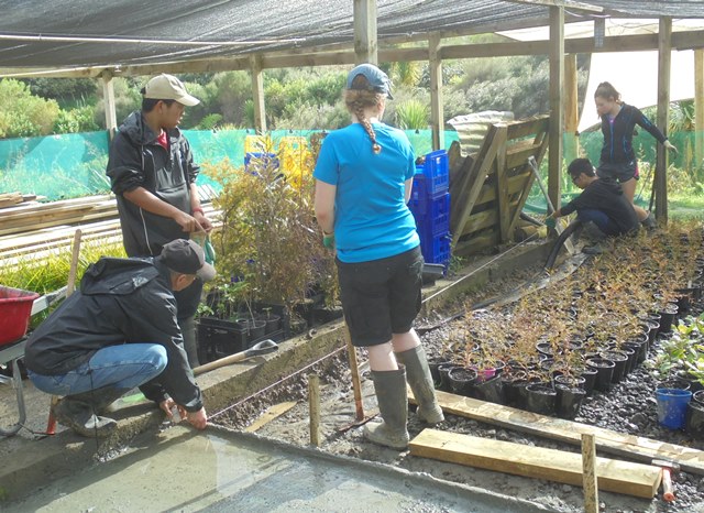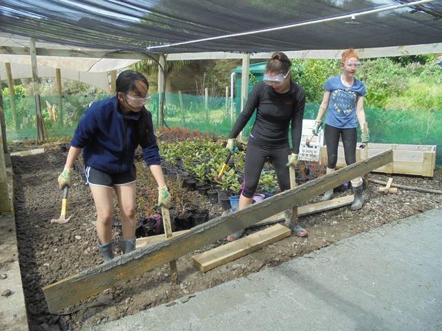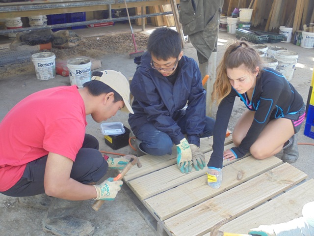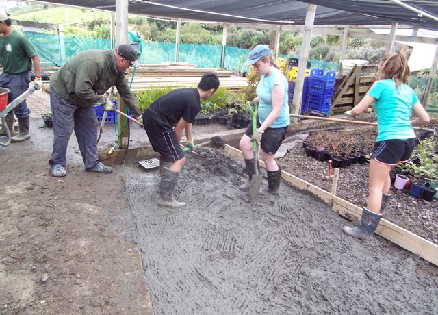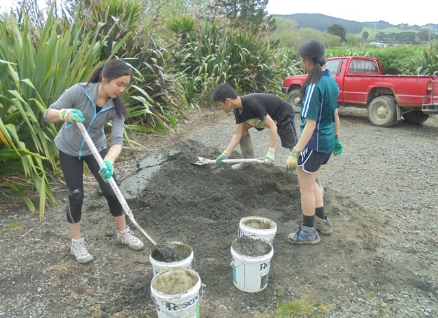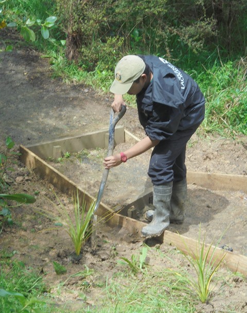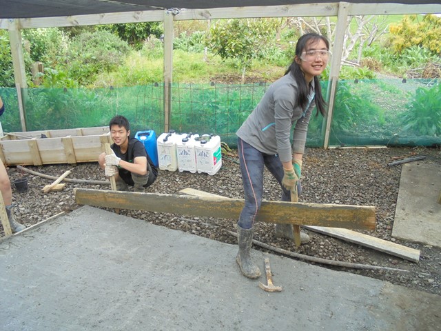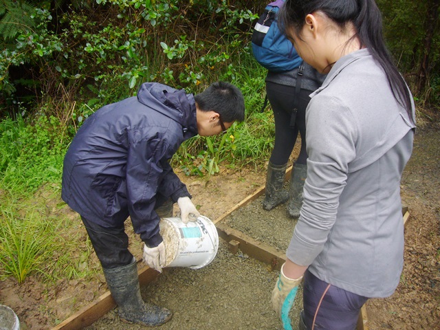The students had an opportunity to learn how to mix up the concrete and fill in the platform.