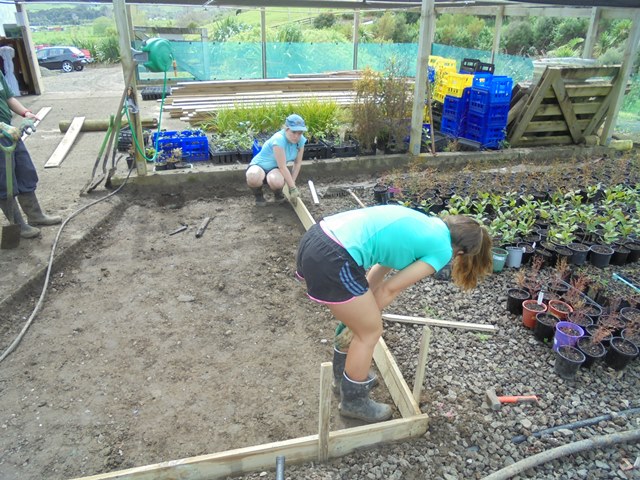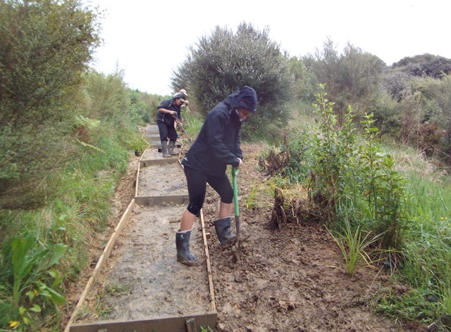 CUE Haven used to be a dairy farm and we’ve converted the old milking shed into a plant nursery, workshop and storeroom. Over the years, people have been cleaning spades and their gumboots on the scoria next to the hose tap. The area didn’t have good drainage and has turned into a big mud puddle that was unsightly and unsafe and often left you with muddier gumboots than when you came in!