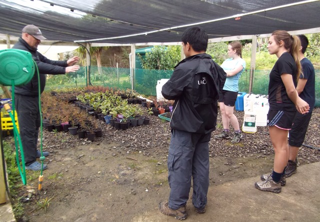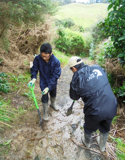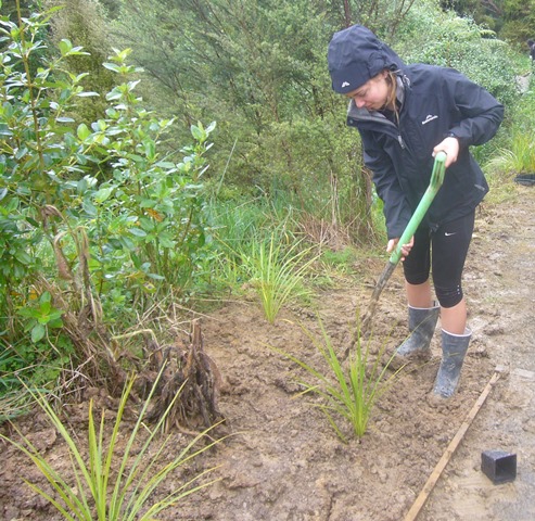 In addition to lots of physical work, the group also had a chance to learn a little bit about water quality issues and native New Zealand freshwater creatures. Midweek, we were joined by Kim and Sophie of the Whitebait Connection.