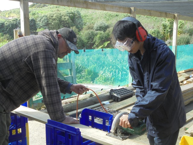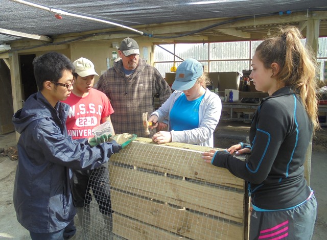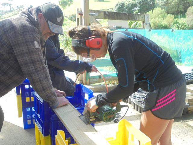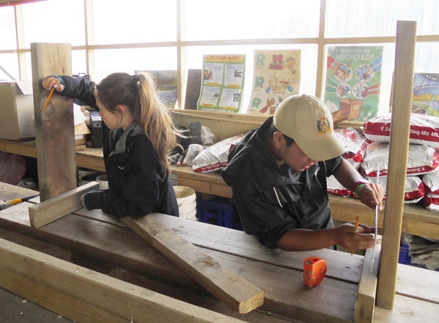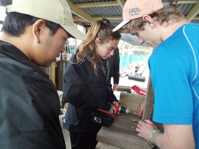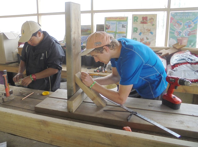 The last big project the students tackled was building a small bench for visitors to use. We hadn’t planned on doing benches this week but at one point the weather was so bad we decided a bench would be a good inside project.