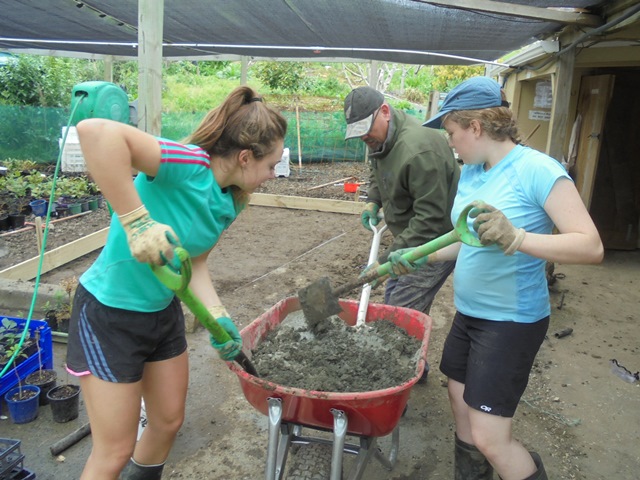 They already had sore muscles from all the digging, but then the concrete and builder’s mix were delivered!