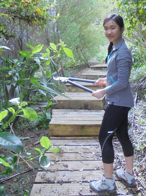 The walking tracks at CUE Haven need regular maintenance and we accomplished a lot this week. Monday afternoon was spent trimming back vegetation that had grown over the tracks.