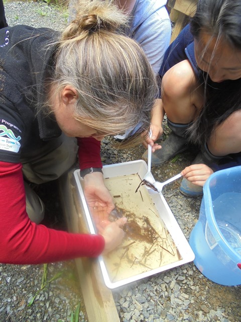 Sophie then talked about macroinvertebrates which are tiny creatures living in the stream. The variety and type of macroinvertebrates is an indicator of the health of a water system. Kim and Sophie gave the students a chance to see how many creatures they could identify in the water sample collected using charts with pictures of the macroinvertebrates.