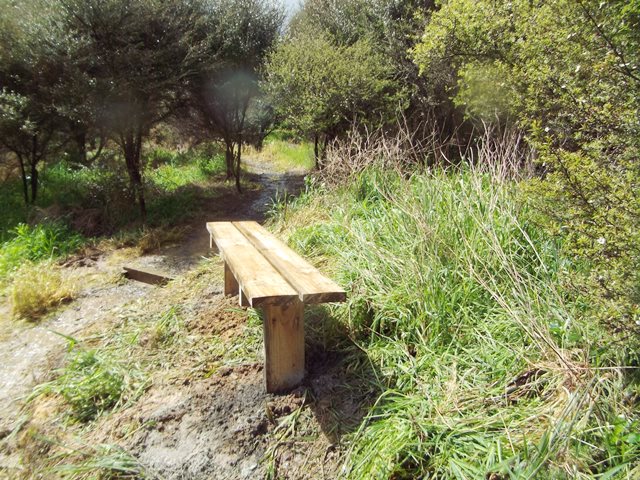 Once the bench was finished, we took it out to the field to install it. We found a nice place overlooking an area in the wetlands where many people have planted kahikatea trees as memorial plantings.