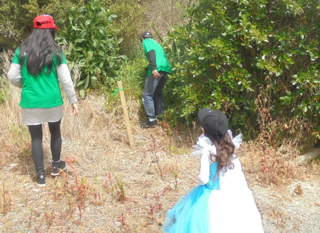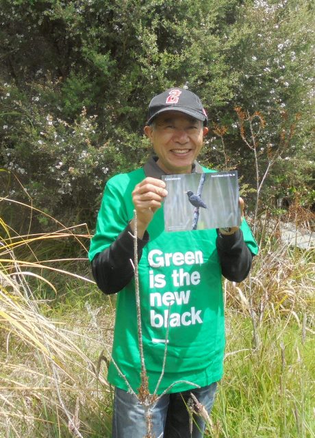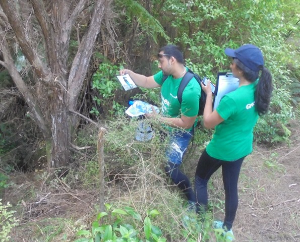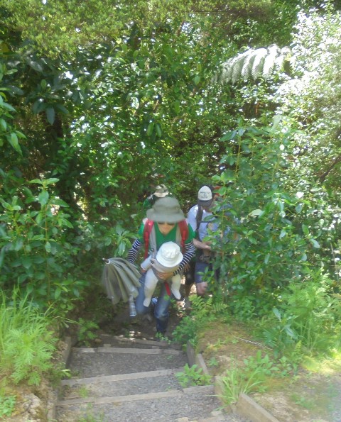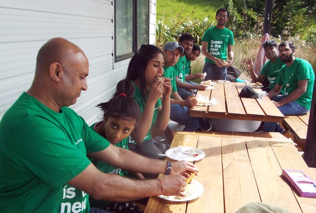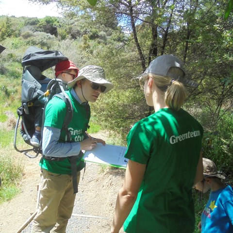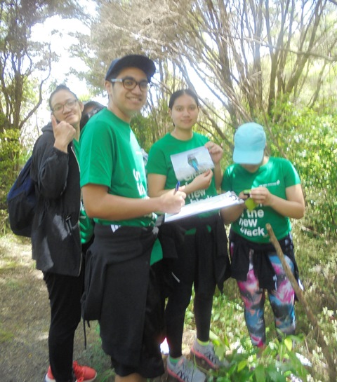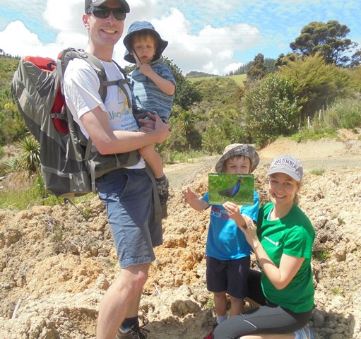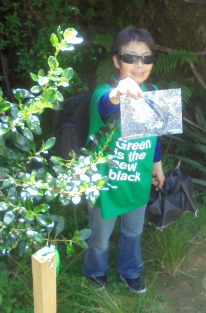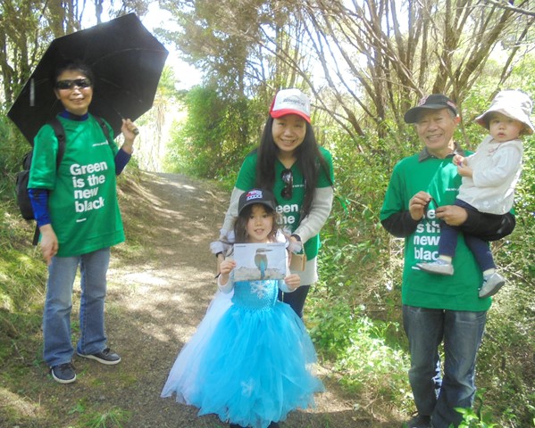 The Greenteam members and their families were back out to CUE Haven today for a spring BBQ picnic and an “enviro hunt.” The enviro hunt was an opportunity for people to enjoy a walk in the native bush while also testing their knowledge of New Zealand animal life. The challenge was to find picture cards of New Zealand birds, insects, mammals and fish which were hidden along the walking track and then to correctly identify them.