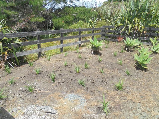Once the weeds were cleared, the team planted some miniature flax bushes to fill in the area.
