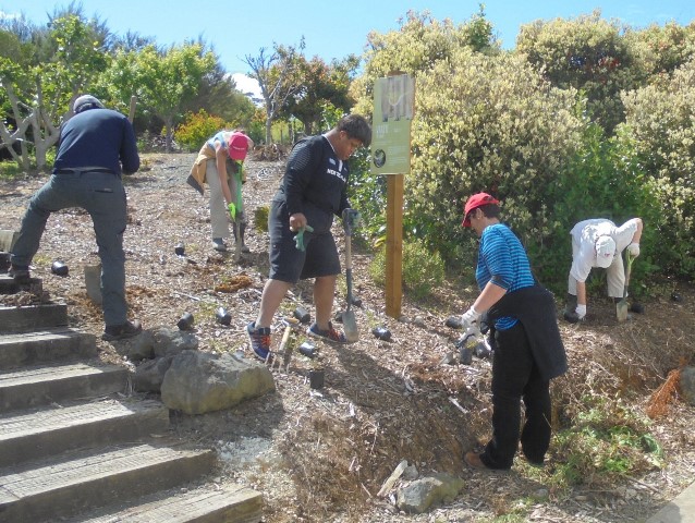 Once the area was clear, the group planted some hardy native ground cover plants which will spread and fill in the area.