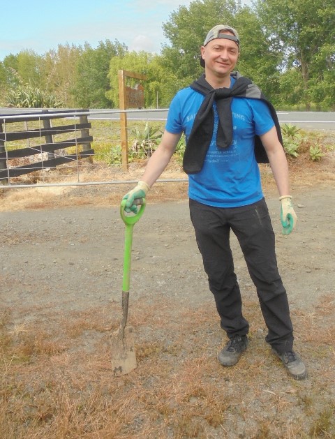 After lunch, Ian helped a young family that had lost a beloved husband and father to cancer plant a kahikatea as a memorial tree in the Lisa’s Wish Grove.