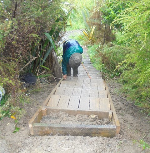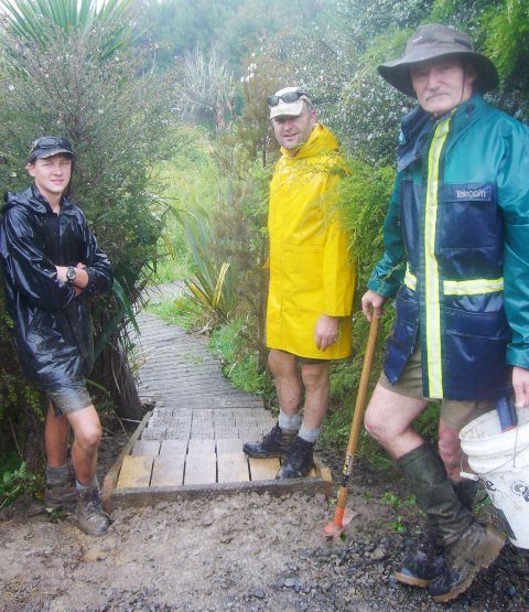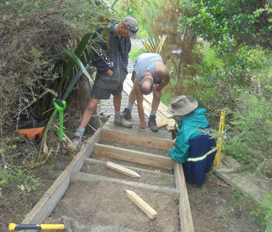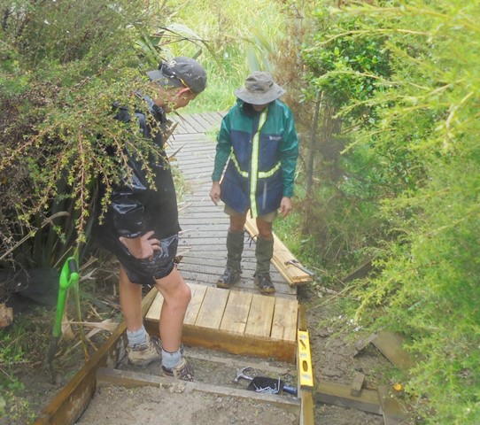 While the boardwalk steps were being fixed, the rest of the group headed further into the bush to work on the old and new tracks.