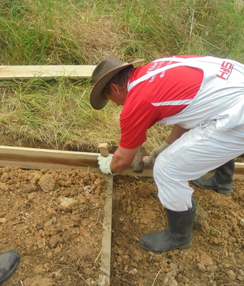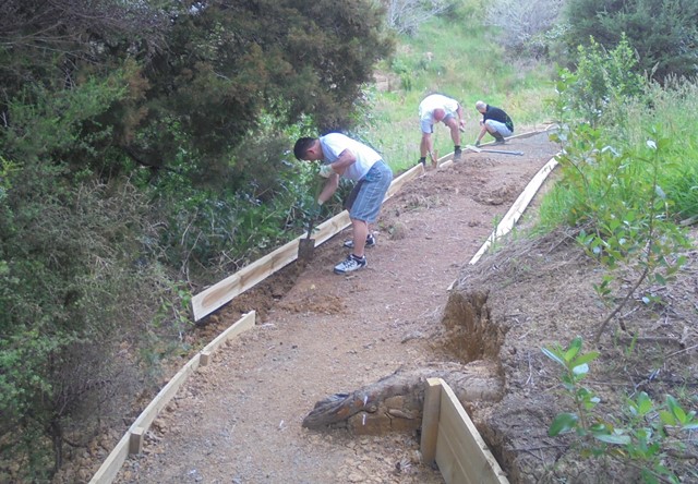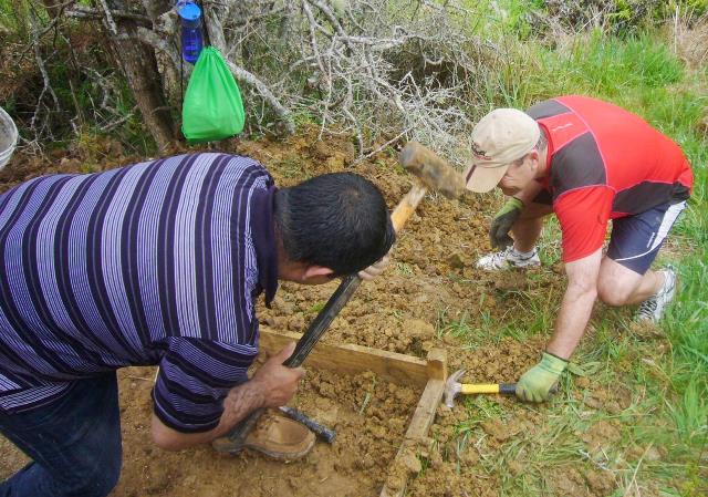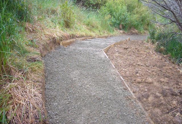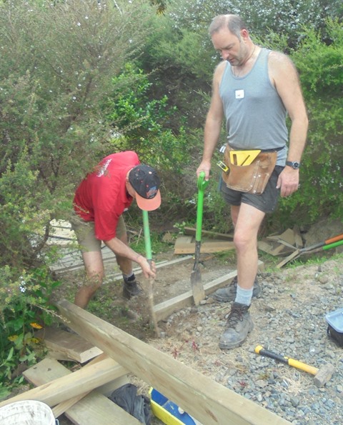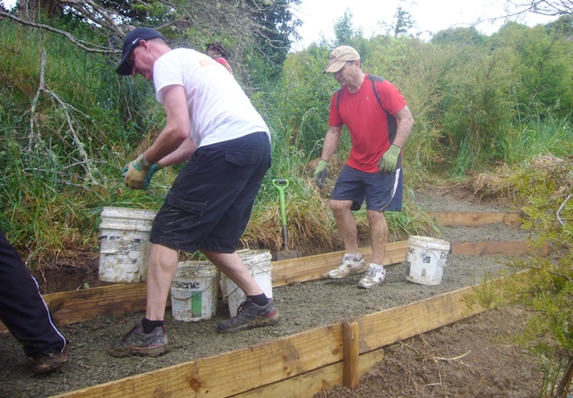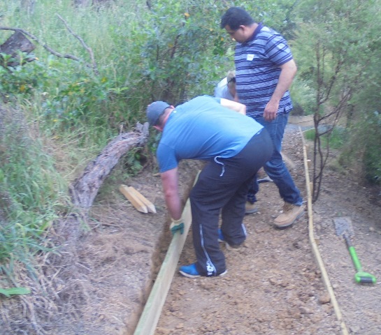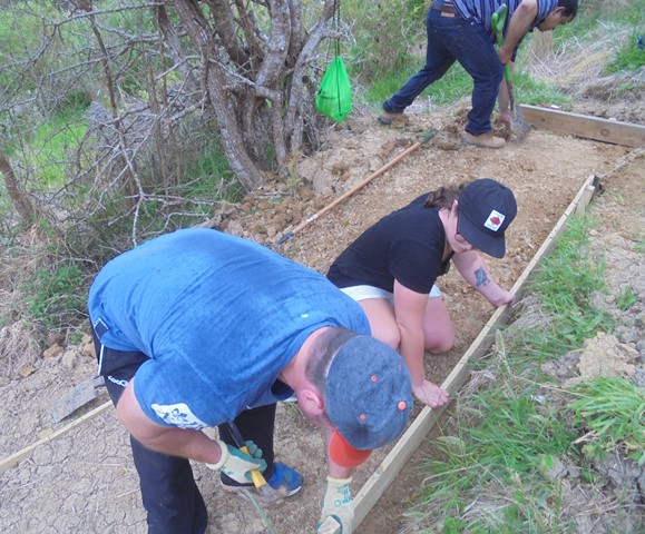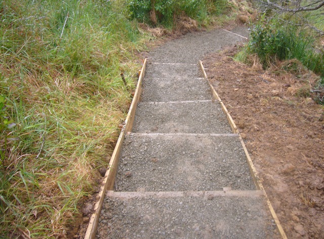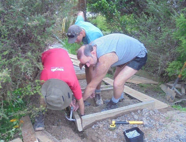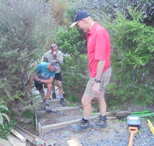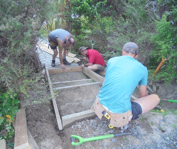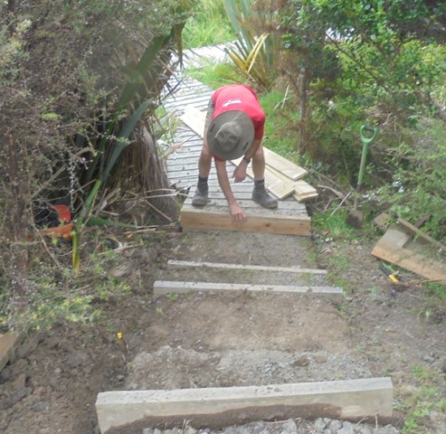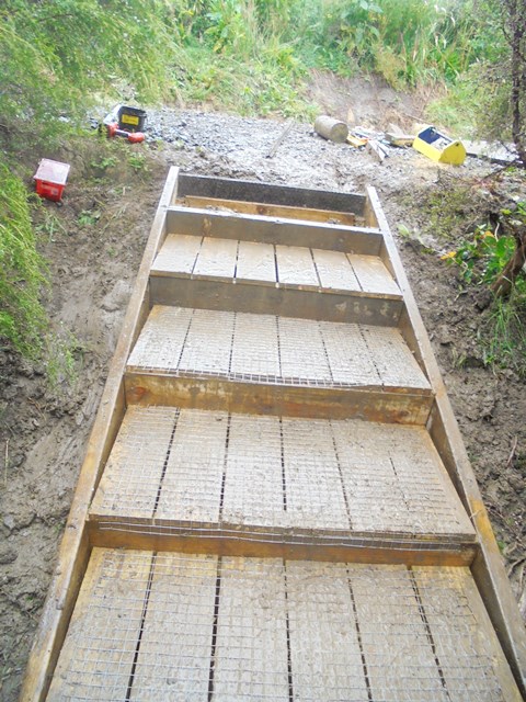 The team then worked on retaining walls and boxing in the steps.