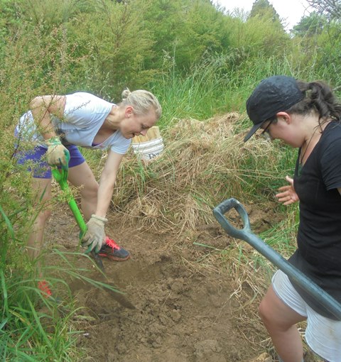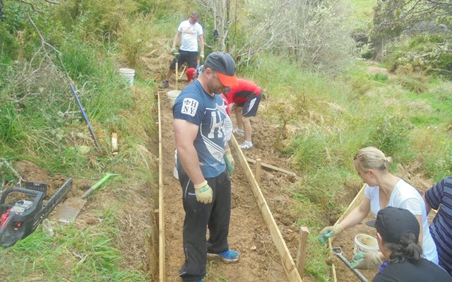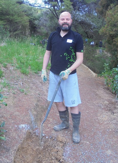Four years ago, a team from Gen-i, a division of NZ Telecom (now Spark) came out to help us with some walking track work as part of their staff volunteer days. Since then, we have had a team from Spark each year, but the team has grown to include Spark alumni who have moved to other companies and their family members as well.
