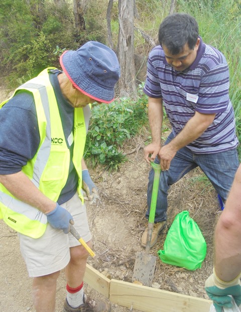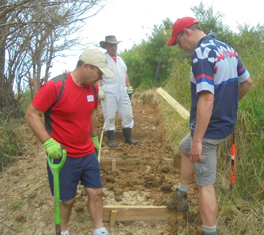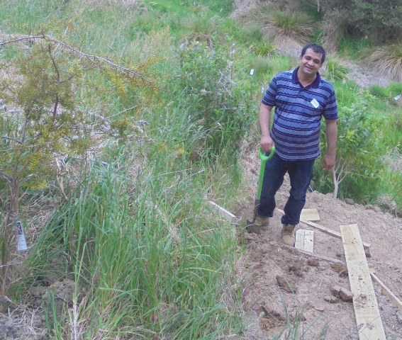 Today we asked the group to work on three tasks. The first was to finish off work on a new walking track that had been established earlier this month, the second was to continue to improve an older track that runs through a hilly section of the property and the last was to fix the steps leading to the boardwalk in the wetlands which had become difficult to use.