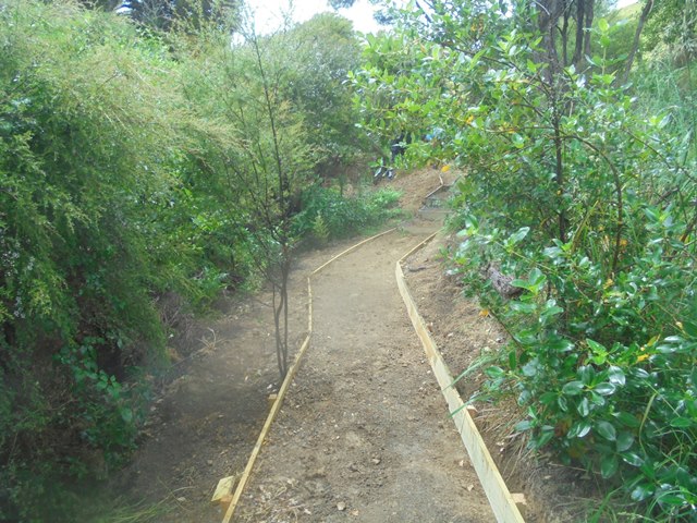 Future volunteer groups will connect this new track coming down to the wetlands with a long bridge across to the improved old track on the other side.