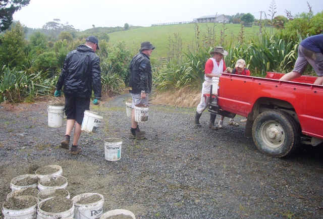 We filled up buckets of gravel down in the car park.