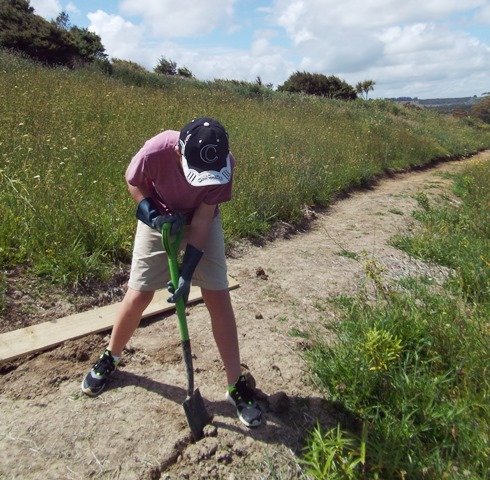 The track held up quite well over the winter but there are number of steps and sections that need to be boxed up and retained and that’s what we asked the Westlake Boys students to help with today.