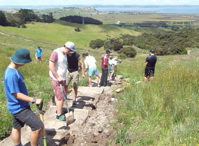 The plan for the day was to do some walking track work at the top of the property. Last year, the Westlake students helped with the initial trail blazing of the track by clearing vegetation and cutting steps. When we build new tracks we wait a year to see how they weather over the wet winter season. That way we can identify any potential drainage or erosion problems.