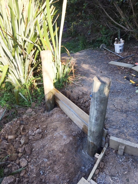 And then cemented the posts in the holes and attached the planks to create a retaining wall.