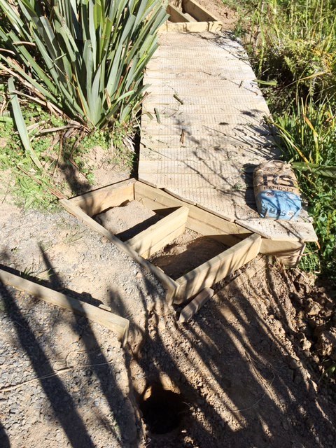 Fixing the entry steps involved two main tasks—boxing in the sides and making the steps less high. This involved a lot of digging: