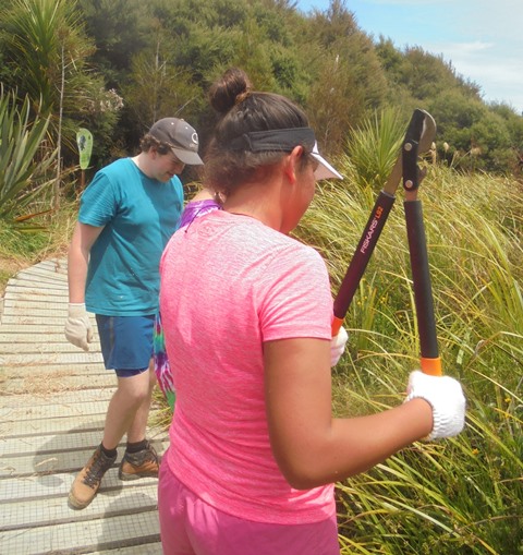 The team decided to take a break from track work and they spent some time trimming vegetation on the main boardwalk.