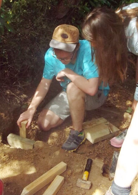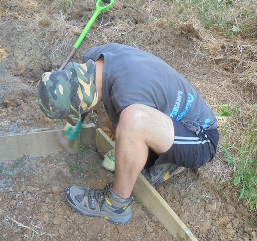 Once the digging is finished, accurate measurements can be made and the timber is cut to size.