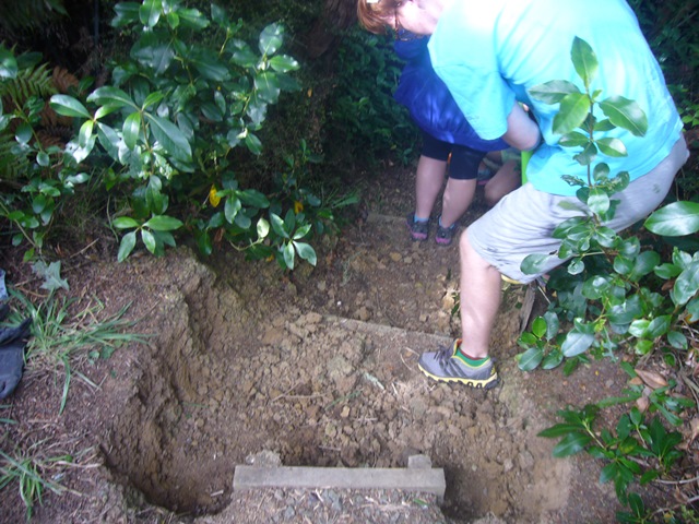 The walking tracks need regular maintenance, especially after winter when we learn how water flows and ground movement may affect the track surface. We identified a number of areas where steps on the track were subject to erosion or where ground movement had affected the alignment of the steps and asked the group to fix the issues.