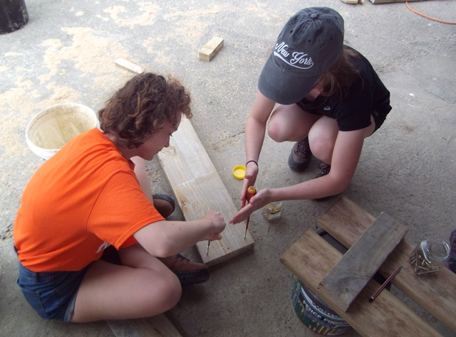 The next day was very wet and we couldn’t install the bench or work outside so the team decided to build another bench! This one was simpler and didn’t involve any carving work.