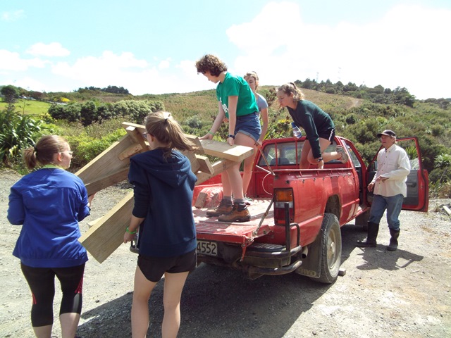 On Friday, the entire group helped install the benches in the field. First we used the girl power to load the benches into the ute.