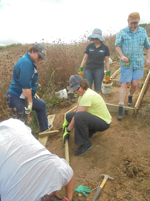 The team took some time to study the steps that needed to be completed and came up with some ideas for improvement. They dug out some of the old steps that had shifted with the earth movements and realigned them and then did the boxing.