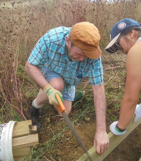 Once they finished off the steps, they continued onto the straight section. This task required digging a straight foundation for the retaining planks and cutting and fixing them into position.